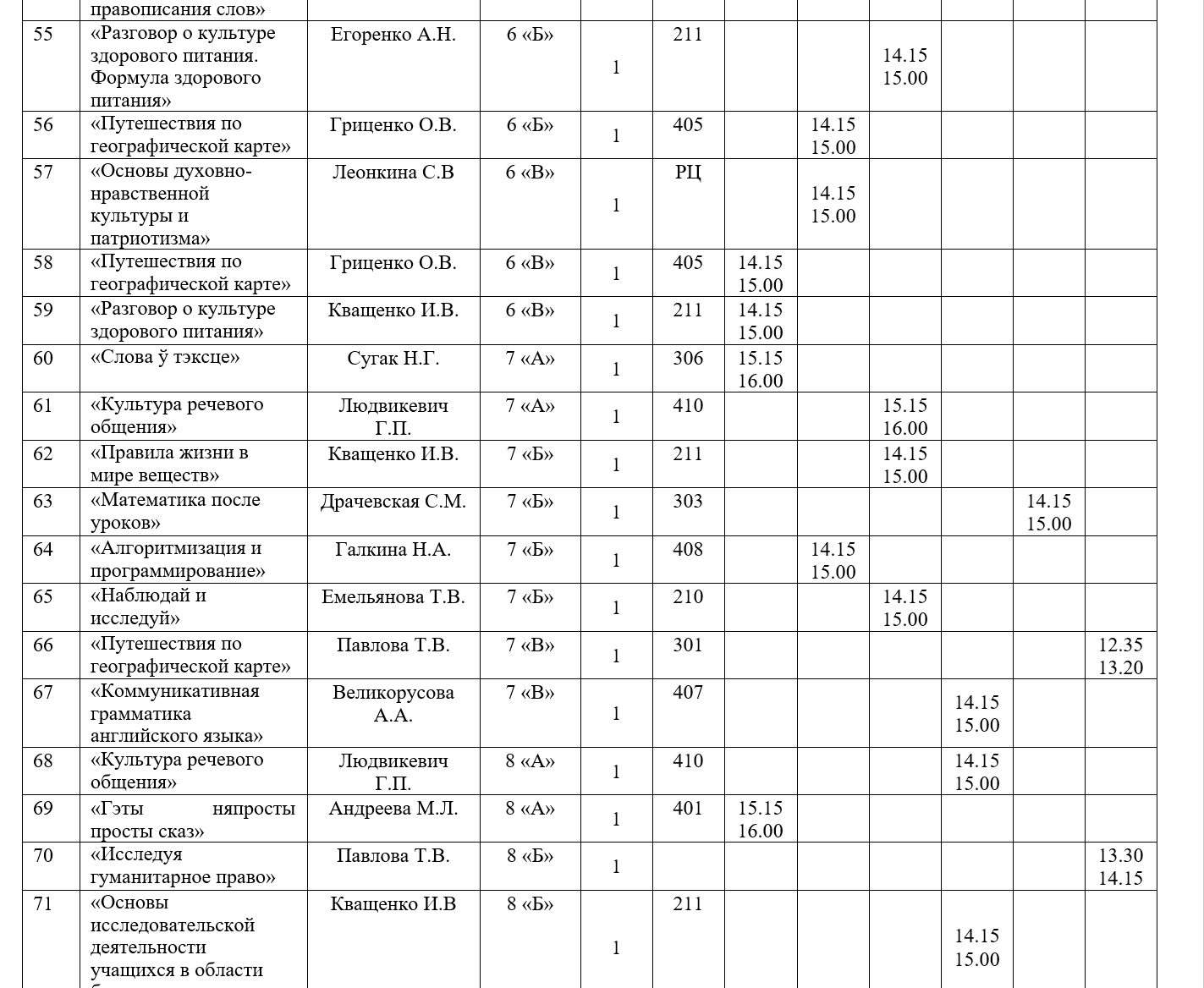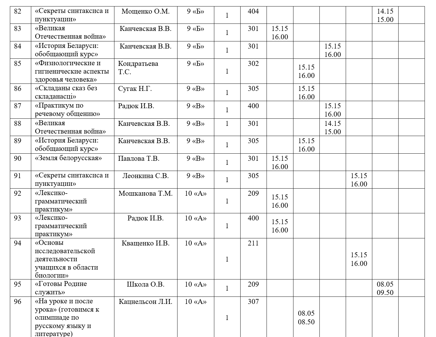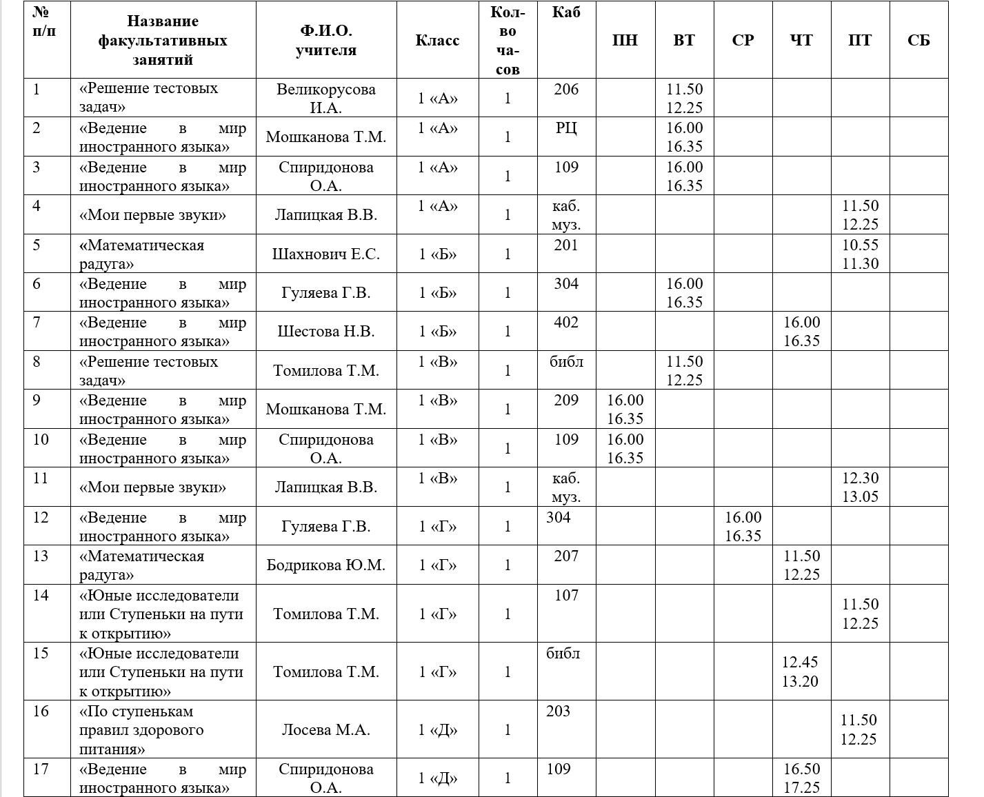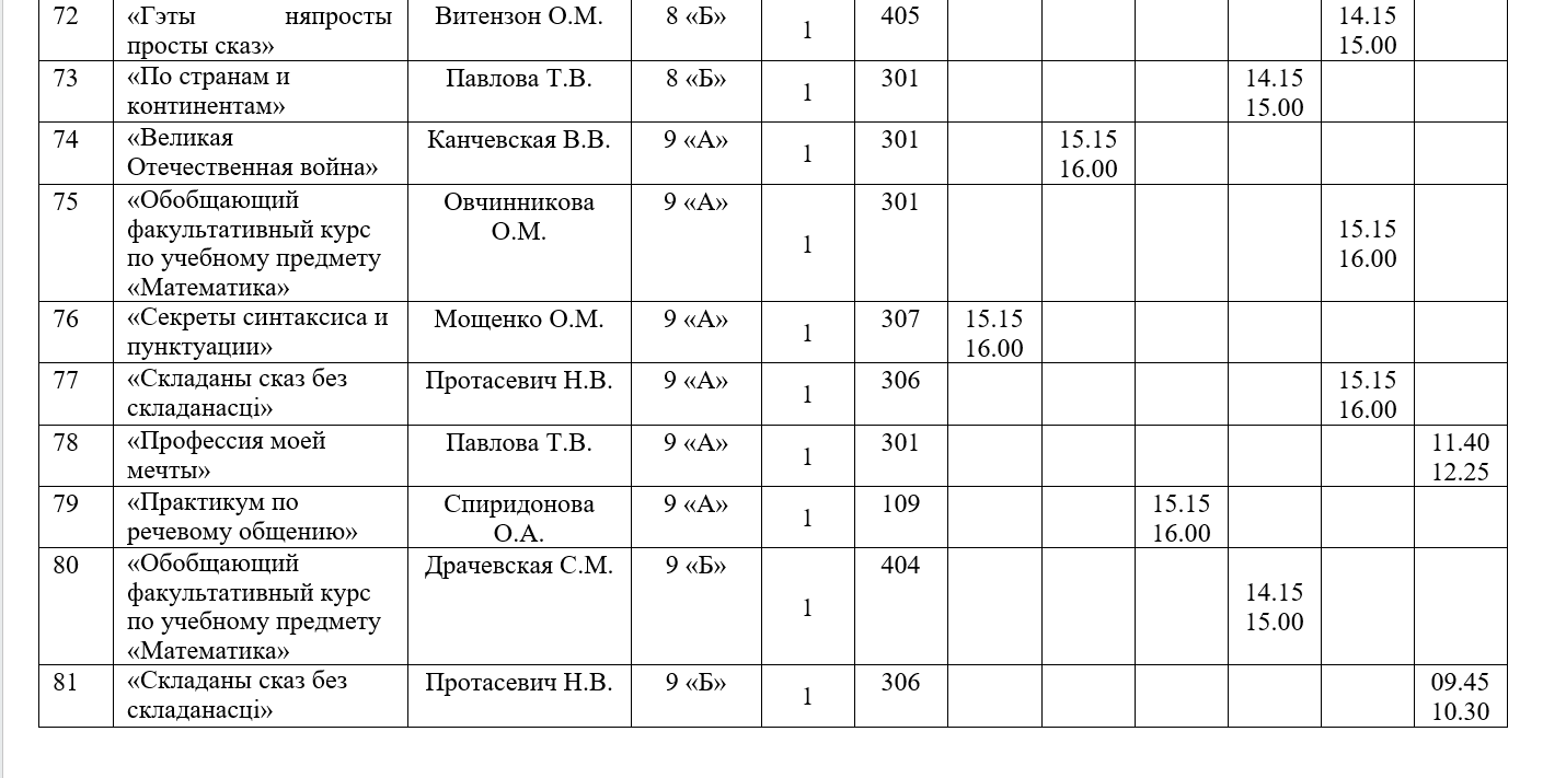 Факультативные занятия