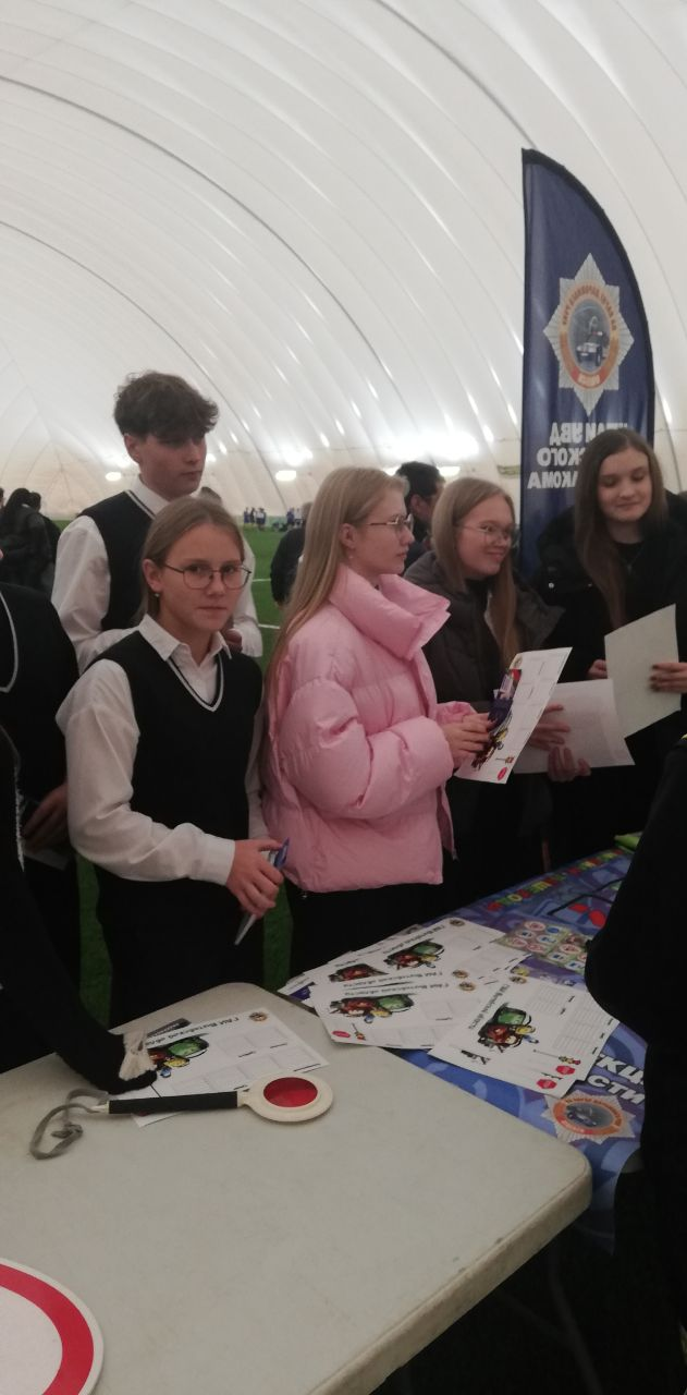 20.10.2025Сегодня учащиеся 9-11 классов посетили интерактивные площадки представителей сферы МВД в Витебском футбольном манеже,приняли участие в церемонии открытия соревнований между командами районных отделов Витебской области.В ходе мероприятия учащиеся познакомились с профессией сотрудника МВД, получили знания безопасного поведения и предупреждения травматизма на дорогах.