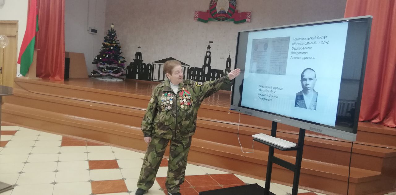 19.12.2025В рамках программы ШАГ 18 декабря на базе ГУО «Средняя школа 34 г. Витебска» состоялась встреча учащихся с Бруевой Ларисой Наумовной, руководителем Витебского регионального центра героико-патриотического воспитания «Пошук» и директором школьного музея «Мы и время» Канчевской В. В. Учащиеся узнали много интересного о работе по увековечиванию памяти защитников Отечества и самостоятельному поиску мест захоронения своих родственников.