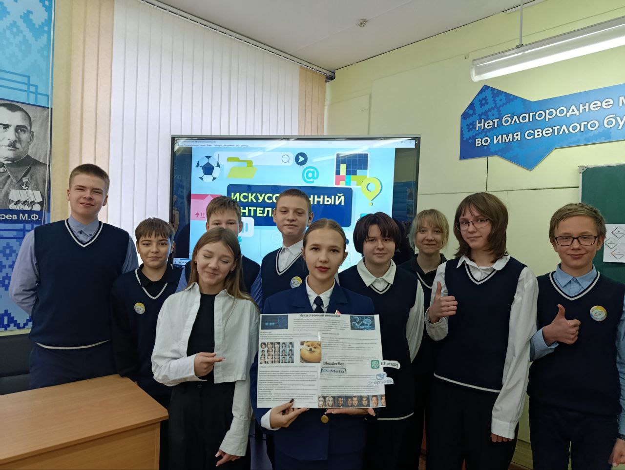 20.11.2025В рамках проведения международной акции, которая проходила в нашей школе с 12. 11.25г. среди учащихся 2-11 классов . Учащиеся 2-х и 4-х классов приняли участие в викторине «Сказочные герои и искусственный интеллект»,учашиеся 11 класса Малецкий Дмитрий и Гречихо Владислава провели для учащихся 5-9 классов мастер-класс по созданию мини-проектов с использованием ИИ-инструментов, в результате чего учащиеся 5-9 классов выполнили свои первые мини-проекты, используя инструменты ИИ. 7-8 классы приняли участие в цифровом уроке, успешно прошли все задания с применением инструментов — ИИ и по результатам получили сертификаты.