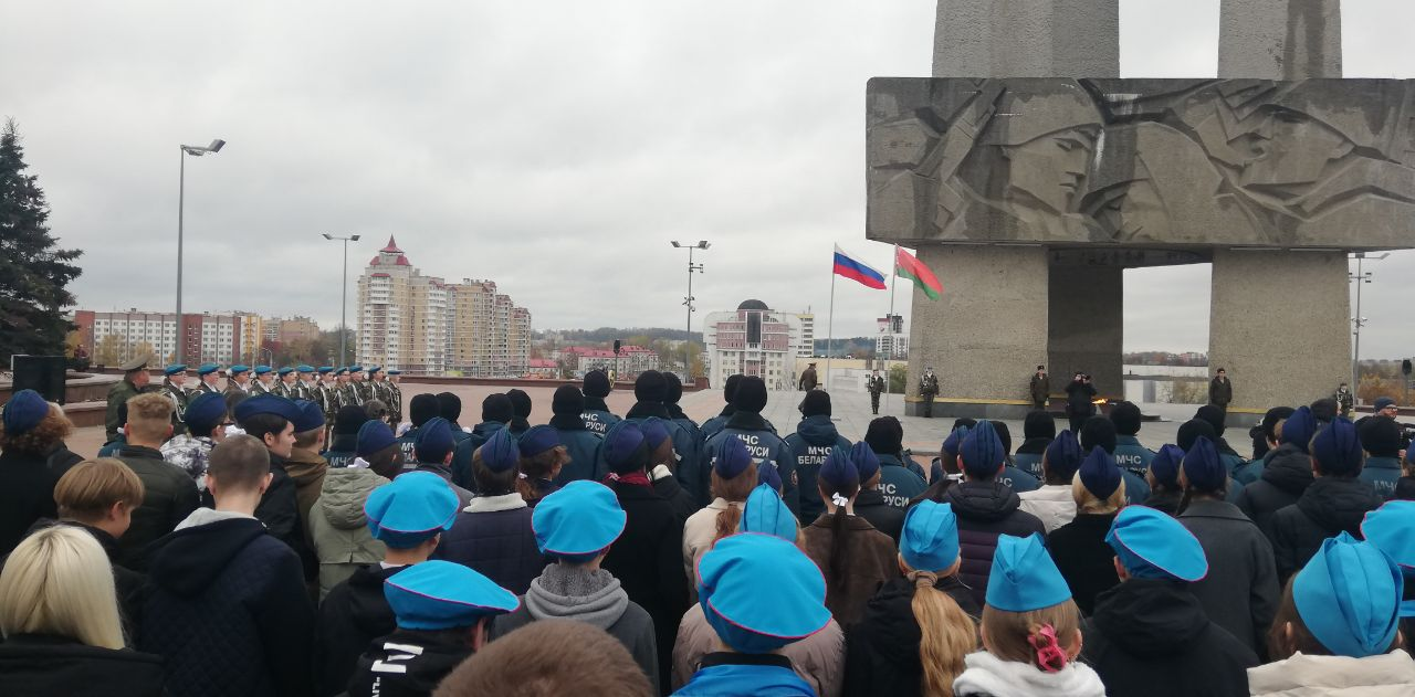 28.10.2025Сегодня учащиеся патриотического 10″А» и 11″ А» класса приняли участие в торжественном открытии международной олимпиады Союзного государства у мемориального комплекса» Три штыка».