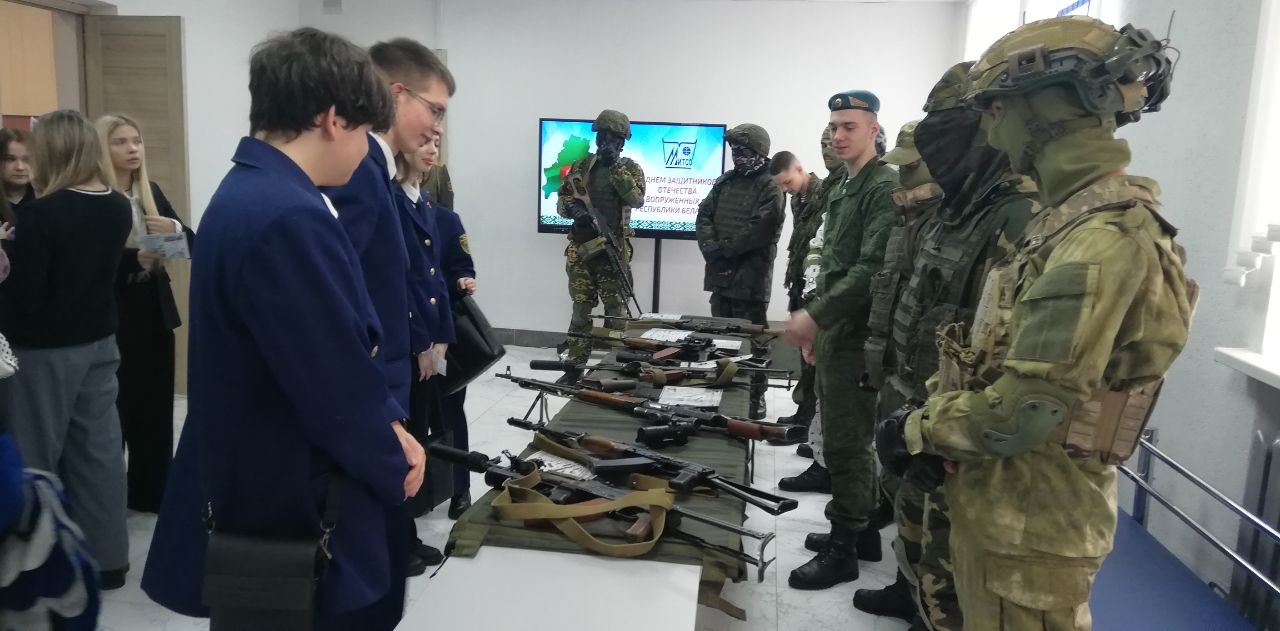 Выставка 103-й Витебской отдельной гвардейской воздушно-десантной бригады ко Дню Защитников Отечества и Вооруженных сил Республика Беларусь для учащихся классов патриотической направленности.