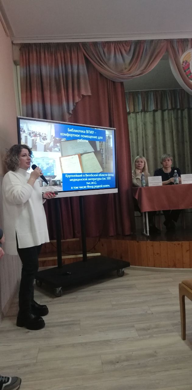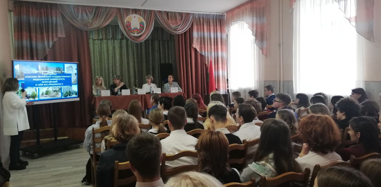 27.10.2025В рамках профориентационной программы школьников, учащиеся 9-х и 11-х классов посетили мероприятие на базе ГУО»Средняя школа 3 им.Л. Н. Белицкого» Приглашённые представители: Витебский медицинский университет, Витебский медицинский колледж, клиника ВГМУ, Витебская фармация.Учащимся были предоставлены программы обучения, довузовской подготовки, презентация учебных учреждений, условия досуга и жизни студентов во время обучения.